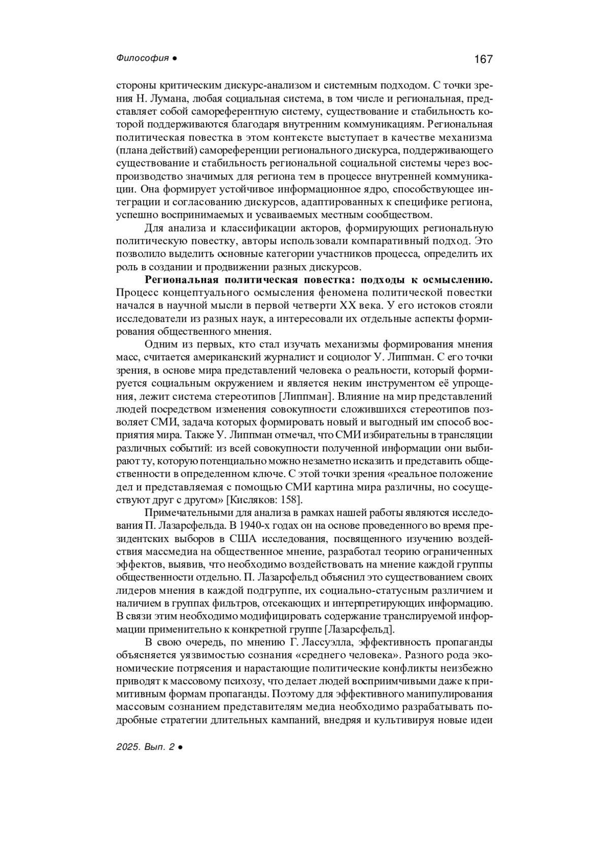 6. Дьякова Е.Г., Трахтенберг А.Д. Социокультурные механизмы установления повестки дня // Научный ежегодник института философии и права уральского отделения российской академии наук. 2001. № 2. С. 166-191. EDN: HYQYGR