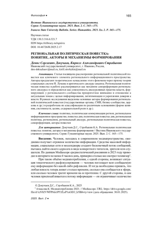 Dokuchaev D.S. Regionalism as a political discourse: methodology of interpretation, Bulletin of Perm University. Series: Political Science, 2012, no. 4, pp. 70-78. - In Russ.