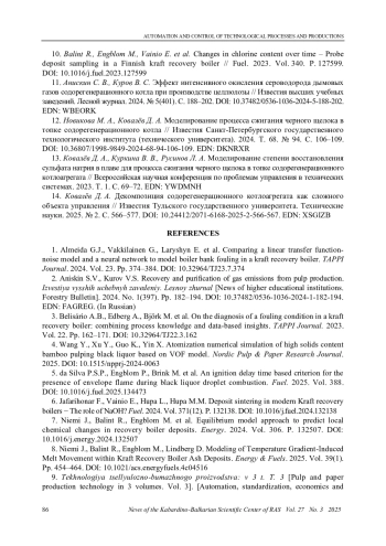 10. Balint R., Engblom M., Vainio E. et al. Changes in chlorine content over time - Probe deposit sampling in a Finnish kraft recovery boiler // Fuel. 2023. Vol. 340. P. 127599. DOI: 10.1016/j.fuel.2023.127599 EDN: SWEZKV