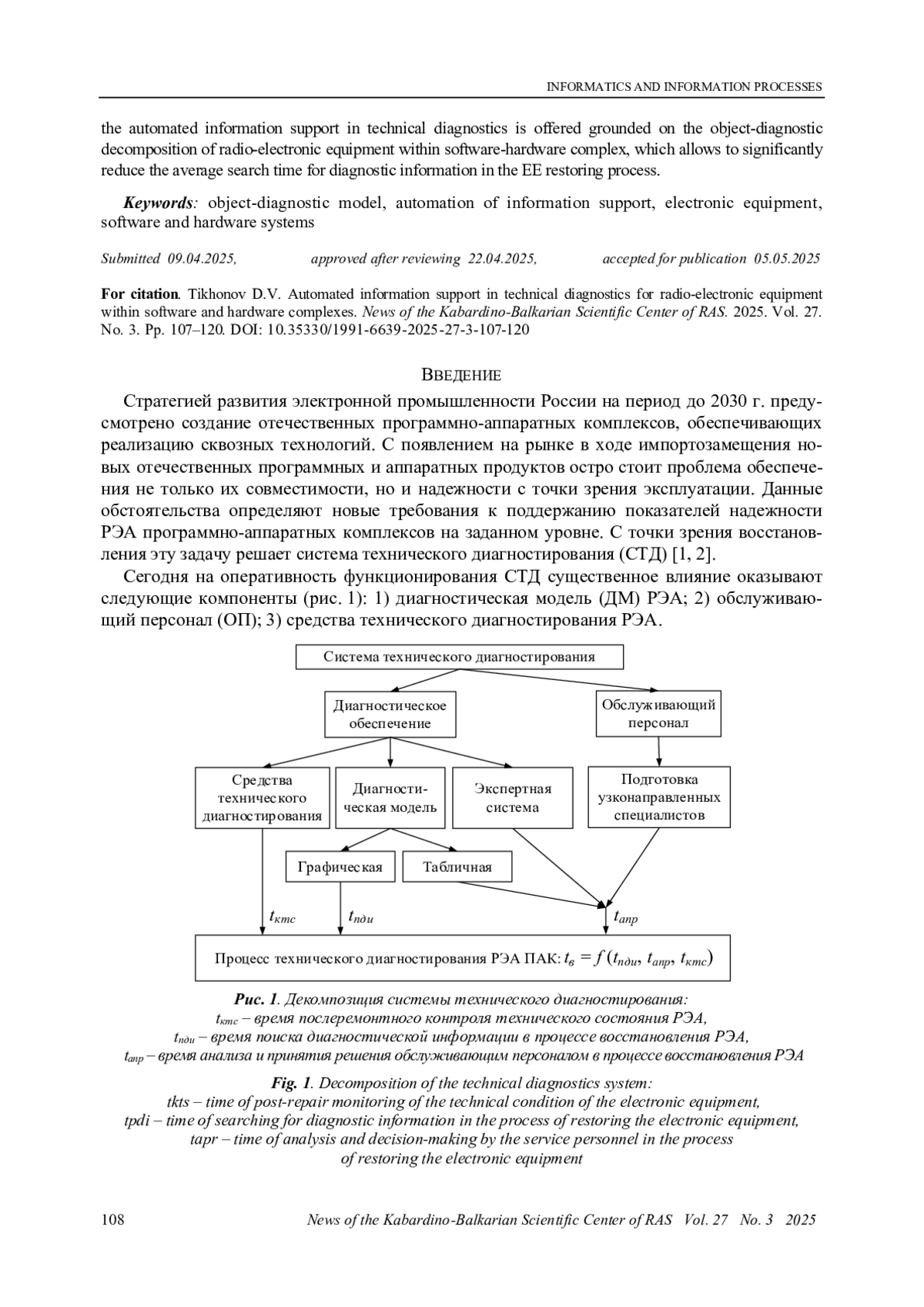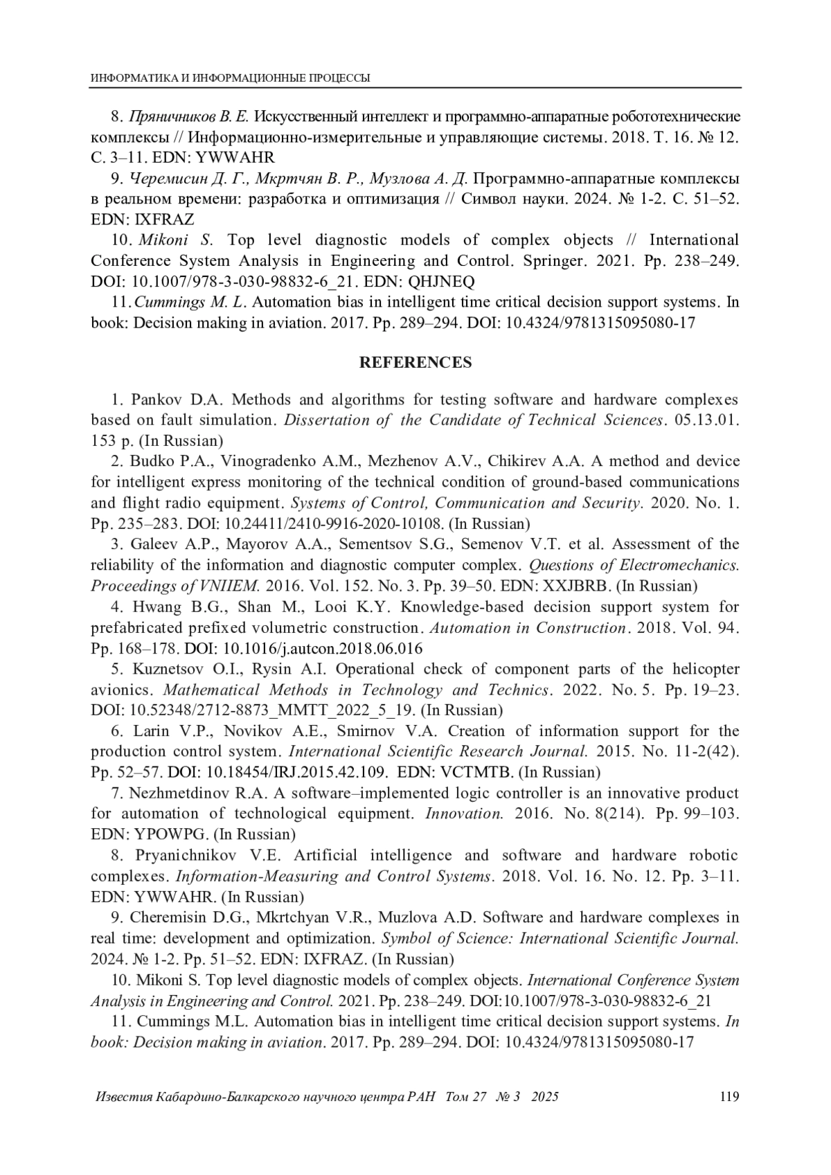 10. Mikoni S. Top level diagnostic models of complex objects // International Conference System Analysis in Engineering and Control. Springer. 2021. Pp. 238-249. DOI: 10.1007/978-3-030-98832-6_21 EDN: QHJNEQ