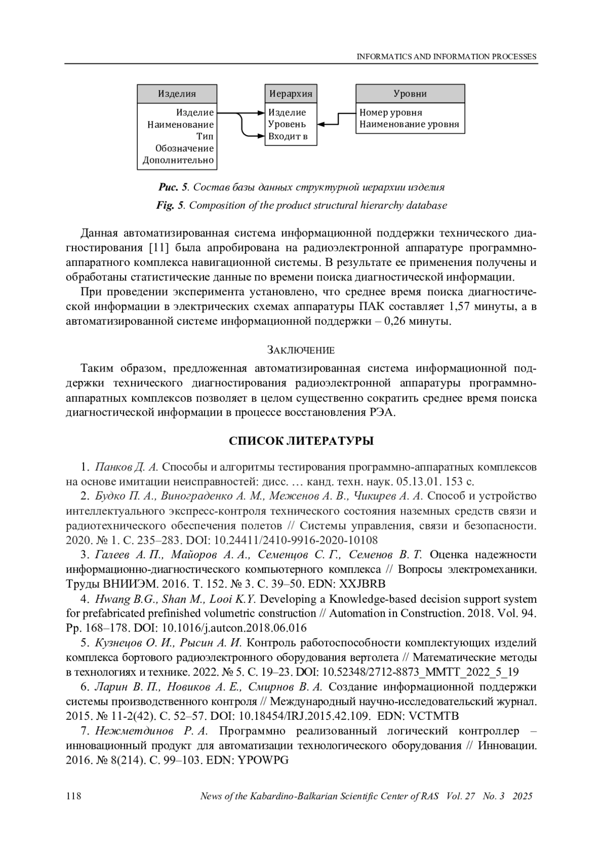 5. Кузнецов О. И., Рысин А. И. Контроль работоспособности комплектующих изделий комплекса бортового радиоэлектронного оборудования вертолета // Математические методы в технологиях и технике. 2022. № 5. С. 19-23. DOI: 10.52348/2712-8873_MMTT_2022_5_19 EDN: EQDPRN