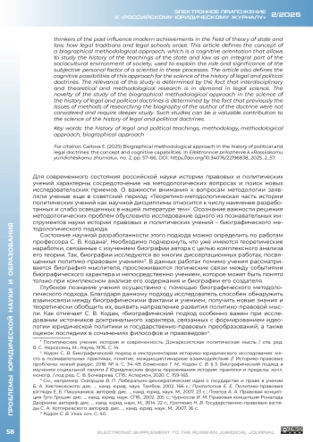 Статья: БИОГРАФИЧЕСКИЙ МЕТОДОЛОГИЧЕСКИЙ ПОДХОД В ИСТОРИИ ПОЛИТИЧЕСКИХ И ПРАВОВЫХ УЧЕНИЙ: ПОНЯТИЕ И ПОЗНАВАТЕЛЬНЫЕ ВОЗМОЖНОСТИ (2025)
