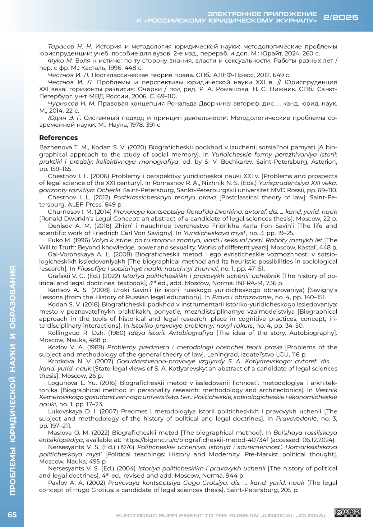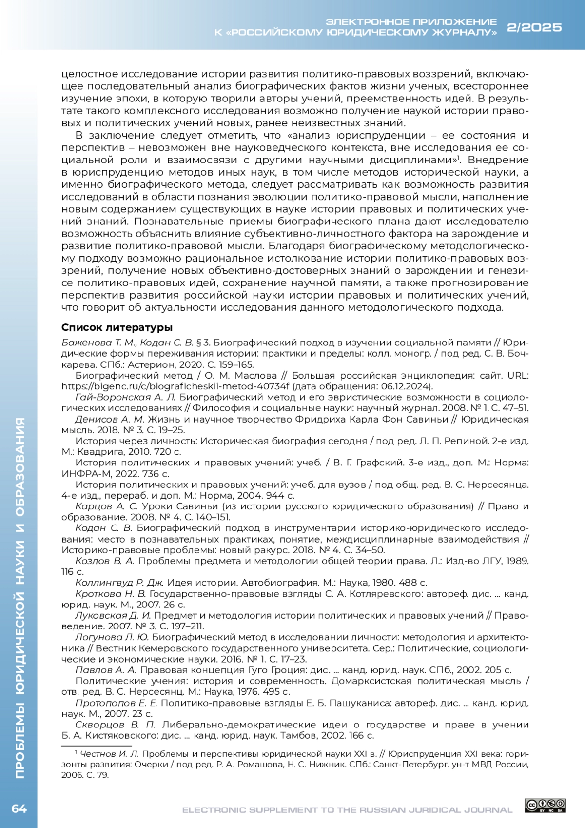 ГАИТОВА Е. Р. БИОГРАФИЧЕСКИЙ МЕТОДОЛОГИЧЕСКИЙ ПОДХОД В ИСТОРИИ ПОЛИТИЧЕСКИХ И ПРАВОВЫХ УЧЕНИЙ: ПОНЯТИЕ И ПОЗНАВАТЕЛЬНЫЕ ВОЗМОЖНОСТИ // ЭЛЕКТРОННОЕ ПРИЛОЖЕНИЕ К РОССИЙСКОМУ ЮРИДИЧЕСКОМУ ЖУРНАЛУ. 2025. № 2