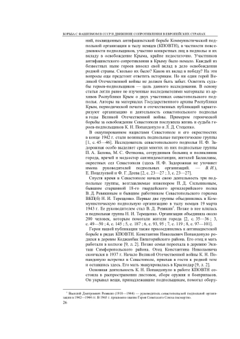 В статье на основе архивных материалов доказано участие К. Н. Попандопуло и Л. Д. Стеценко в деятельности Коммунистической подпольной организации в тылу немцев (КПОВТН) в оккупированном Севастополе в годы Великой Отечественной войны. Автор повествует о том, как К. Н. Попандопуло и Л. Д. Стеценко, одни из многих безвестных героев войны, присоединились к севастопольскому подполью, выполняли задания организации. Также говорится об их судьбе после раскрытия и разгрома КПОВТН в марте—апреле 1944 г. Автор констатирует, что деятельность подпольщиков заключалась в агитационно-пропагандистской работе (распространение листовок), в установлении контактов с партизанами Крыма и командованием Красной армии, а также в добыче оружия для подготовки вооруженного восстания. Отмечен вклад подпольщиков в общее дело антифашистской борьбы и создание условий для освобождения полуострова от немецко-румынской оккупации весной 1944 г. Статья написана на основании впервые вводимых в научный оборот источников из фондов Государственного архива Республики Крым. Также в статье использованы материалы советской периодической печати и отечественные публикации.
