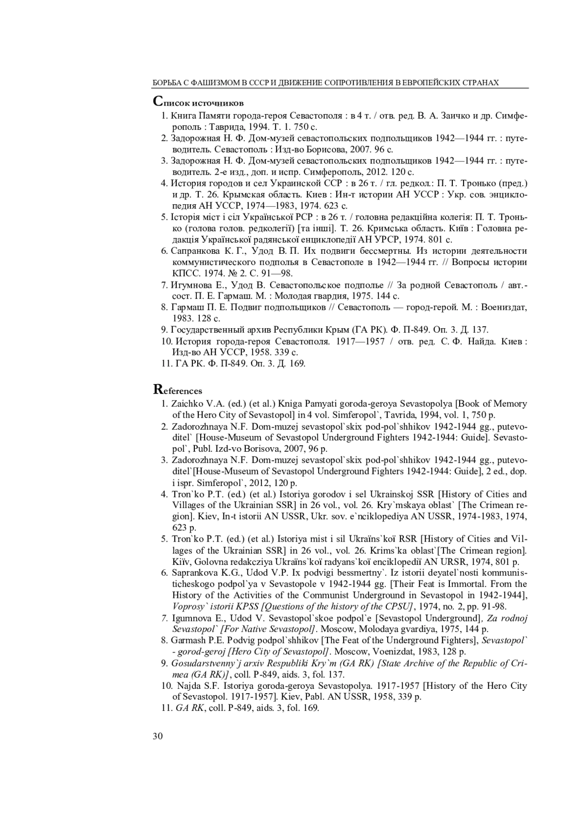 8. Гармаш П. Е. Подвиг подпольщиков // Севастополь - город-герой. М.: Воениздат, 1983. 128 с.