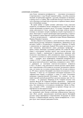 Апрельская война 1941 г. застала в Королевстве Югославия примерно 30 тыс. русских эмигрантов, которые в результате революционных событий 1917 г. и Гражданской войны (1918—1922) покинули Россию и в период с 1919 по 1923 г. приехали в Королевство сербов, хорватов и словенцев (СХС) (с 1929 г. — Королевство Югославия). После разделения территории Югославии в результате вторжения Германии и Италии в страну в апреле 1941 г. и ее капитуляции большая часть представителей этого сообщества осталась пассивной, некоторые решили сотрудничать с немцами, но были и те, кто выбрал для себя путь активного сопротивления оккупантам. В борьбу с оккупантами на территории бывшей Югославии включились русские эмигранты — представители самых различных профессий (инженеры, художники, ученые, врачи). По подсчетам крупнейшего специалиста по истории русского зарубежья в Югославии Алексея Борисовича Арсеньева, более 90 русских врачей и медсестер участвовали в движении Сопротивления. Русские врачи были специалистами в различных областях медицины. Большинство из тех, сведения о которых у нас есть, получили образование в самом Королевстве СХС (Королевство Югославия), некоторые вступали в Сопротивление будучи студентами медицинских факультетов. Среди боровшихся с фашизмом врачей были и представители первого поколения русских беженцев, в том числе участников Белого движения. В годы оккупации русские врачи, участвовавшие в партизанском движении, вступившие в Народно-освободительную армию Югославии, заведовали больницами, руководили эпидемиологической службой, внося таким образом вклад в борьбу с фашизмом. В статье приводятся биографические сведения лишь о некоторых из них.