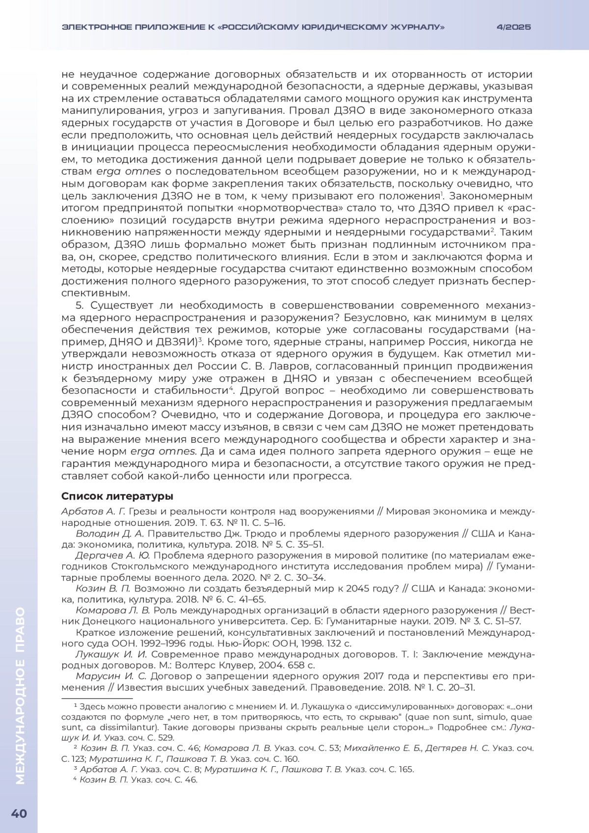 4. Козин В. П. Возможно ли создать безъядерный мир к 2045 году? // США и Канада: экономика, политика, культура. 2018. № 6. С. 41-65.