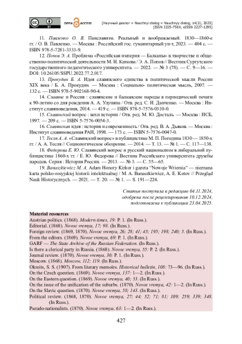 11. Павленко О. В. Панславизм. Реальный и воображаемый. 1830-1860-е гг. / О. В. Павленко. - Москва : Российский гос. гуманитарный ун-т, 2023. - 404 с. - ISBN 978-5-7281-3333-9.