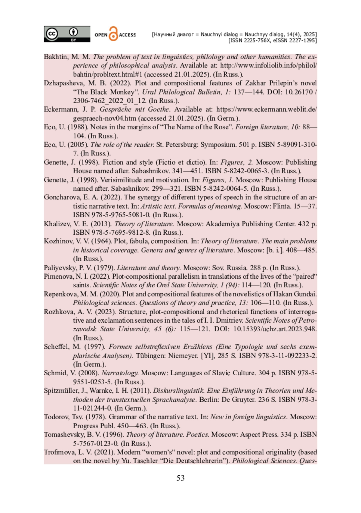 8. Гончарова Е. А. Синергия разных видов речи в структуре художественного повествовательного текста / Е. А. Гончарова // Художественный текст. Формулы смысла. - Москва : Флинта, 2022. - С. 15-37. - ISBN 978-5-9765-5081-0.
