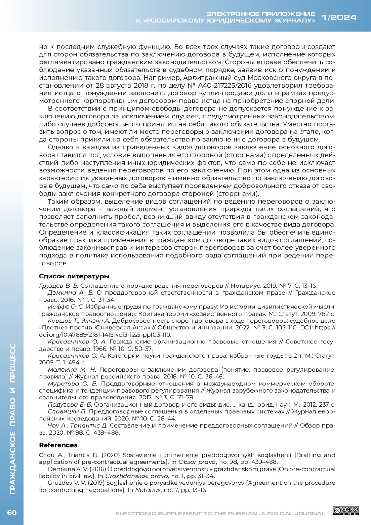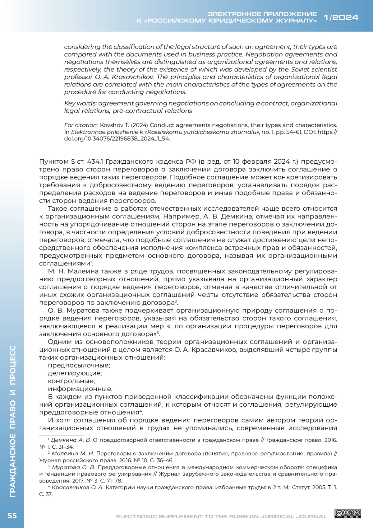 КОВШОВ Т. В. СОГЛАШЕНИЯ О ПОРЯДКЕ ВЕДЕНИЯ ПЕРЕГОВОРОВ, ИХ ВИДЫ И ХАРАКТЕРИСТИКА // ЭЛЕКТРОННОЕ ПРИЛОЖЕНИЕ К РОССИЙСКОМУ ЮРИДИЧЕСКОМУ ЖУРНАЛУ. 2024. № 1
