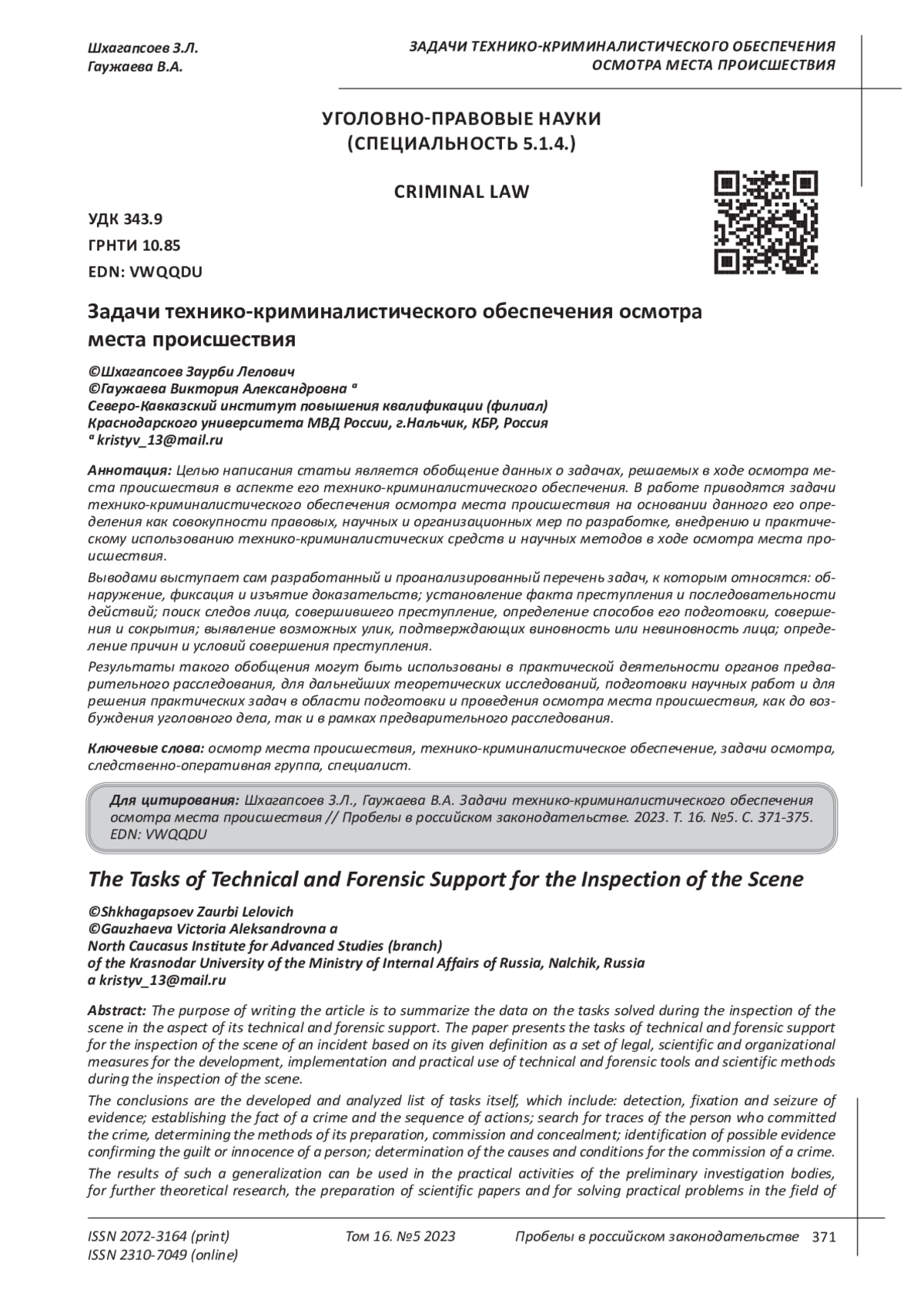 5. Колиев В.В. Проблемы и возможные пути повышения эффективности технико-криминалистического обеспечения при производстве следственных действий // Аграрное и земельное право. 2022. № 9 (213). С. 126-128. EDN: UNQPHT