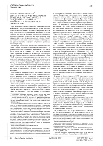 Статья: ЛИШЕНИЕ ПРАВА ЗАНИМАТЬ ОПРЕДЕЛЕННУЮ ДОЛЖНОСТЬ ИЛИ ЗАНИМАТЬСЯ ОПРЕДЕЛЕННОЙ ДЕЯТЕЛЬНОСТЬЮ КАК ВИД УГОЛОВНОГО НАКАЗАНИЯ В РЕСПУБЛИКЕ КАЗАХСТАН (2023)
