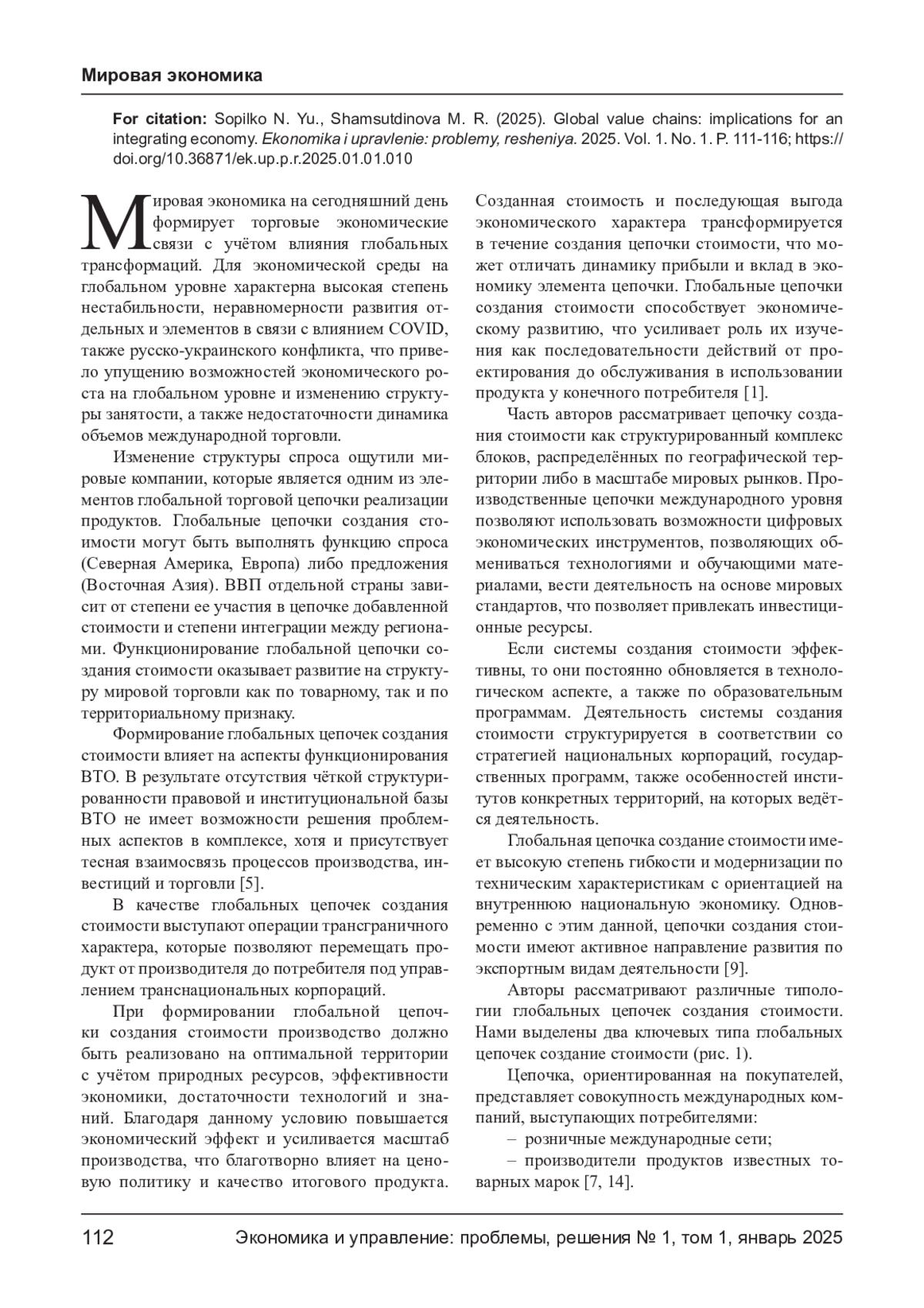 1. Валиева О. В. Оценки влияния глобальных технологических цепочек на региональное и национальное развитие / О. В. Валиева // Интерэкспо Гео-Сибирь. - 2021. - Т. 3, № 1. - С. 126-132. EDN: GMJWPC