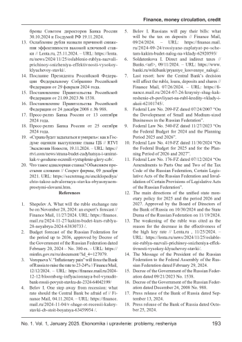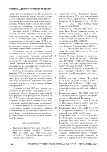 13. Ослабление рубля назвали причиной снижения эффективности высокой ключевой ставки // Lenta.ru, 25.11.2024. - URL: https://lenta.ru/news/2024/11/25/oslablenie-rublya-nazvaliprichinoy-snizheniya-effektivnosti-vysokoyklyuchevoy-stavki/.
