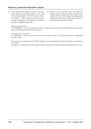 19. “Страна будет задыхаться и умирать”: как в Госдуме оценили выступление главы ЦБ // RTVI Эксклюзив Новости, 19.11.2024. - URL: https://rtvi.com/news/strana-budet-zadyhatsya-i-umiratkak-v-gosdume-oczenili-vystuplenie-glavy-czb/.