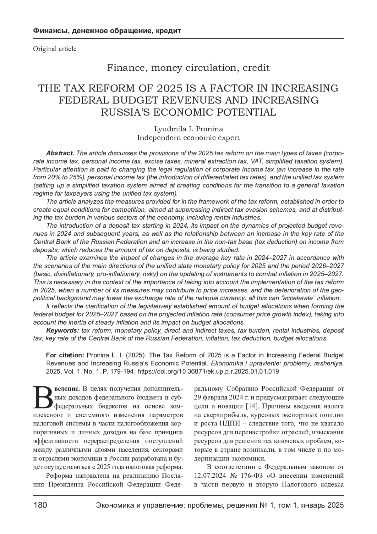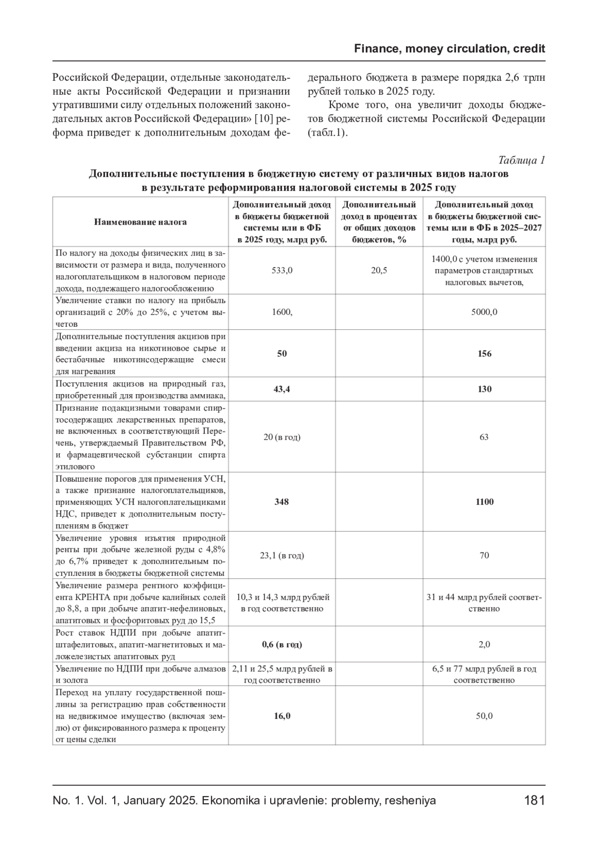 В статье рассматриваются положения налоговой реформы 2025 года по основным видам налогов (налог на прибыль организаций, НДФЛ, акцизы, НДПИ, НДС, режим упрощенной системы налогообложения). Особое внимание уделяется изменению правового регулирования налога на прибыль организаций (увеличение ставки с 20% до 25%), НДФЛ (введение дифференцированных ставок налогообложения), УСН (настройка режима упрощенной системы налогообложения, направленная на создание условий для перехода на общий режим налогообложения налогоплательщиков, применяющих УСН).