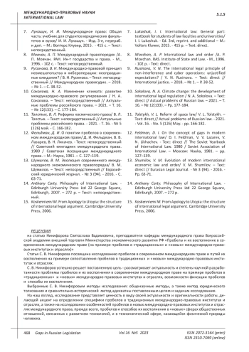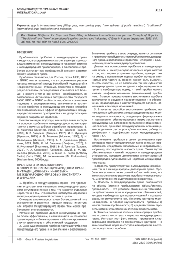 Статья: ПРОБЕЛЫ И ИХ ВОСПОЛНЕНИЕ В СОВРЕМЕННОМ МЕЖДУНАРОДНОМ ПРАВЕ (НА ПРИМЕРЕ ПРОБЕЛОВ В "ТРАДИЦИОННЫХ" И "НОВЫХ" МЕЖДУНАРОДНО-ПРАВОВЫХ ИНСТИТУТАХ И ОТРАСЛЯХ) (2023)