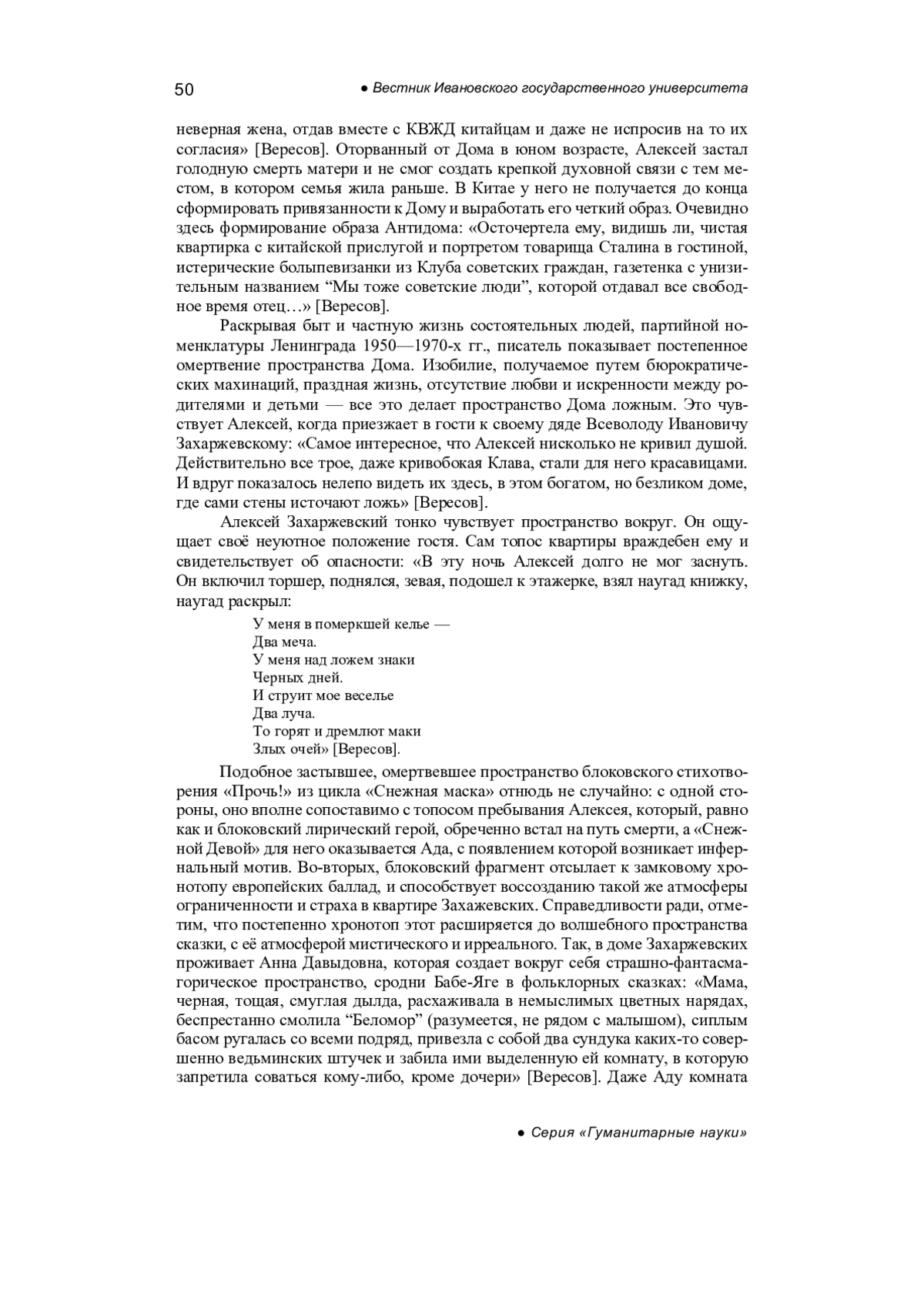 ОСЬМУХИНА О. Ю., ШИШОНКОВА М. С. ХРОНОТОП ДОМА В РОМАНЕ Д. ВЕРЕСОВА "ЧЕРНЫЙ ВОРОН" // ВЕСТНИК ИВАНОВСКОГО ГОСУДАРСТВЕННОГО УНИВЕРСИТЕТА. СЕРИЯ: ГУМАНИТАРНЫЕ НАУКИ. 2024. № 3