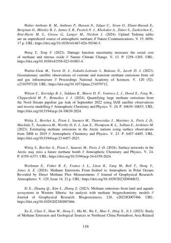 164. Xi X., Zhuang Q., Kim S., Zhang Z. (2023). Methane emissions from land and aquatic ecosystems in Western Siberia: An analysis with methane biogeochemistry models // Journal of Geophysical Research: Biogeosciences. 128, e2023JG007466. DOI: 10.1029/2023JG007466