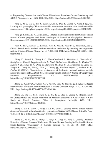 166. Yang J., Xu Z., Xia Z., Pei X., Yang Y., Qiu B., Zhao S., Zhang Y., Wang Z. (2024а). Locating and quantifying CH4 sources within a wastewater treatment plant based on mobile measurements / EGUsphere [preprint]. DOI: 10.5194/egusphere-2024-2522