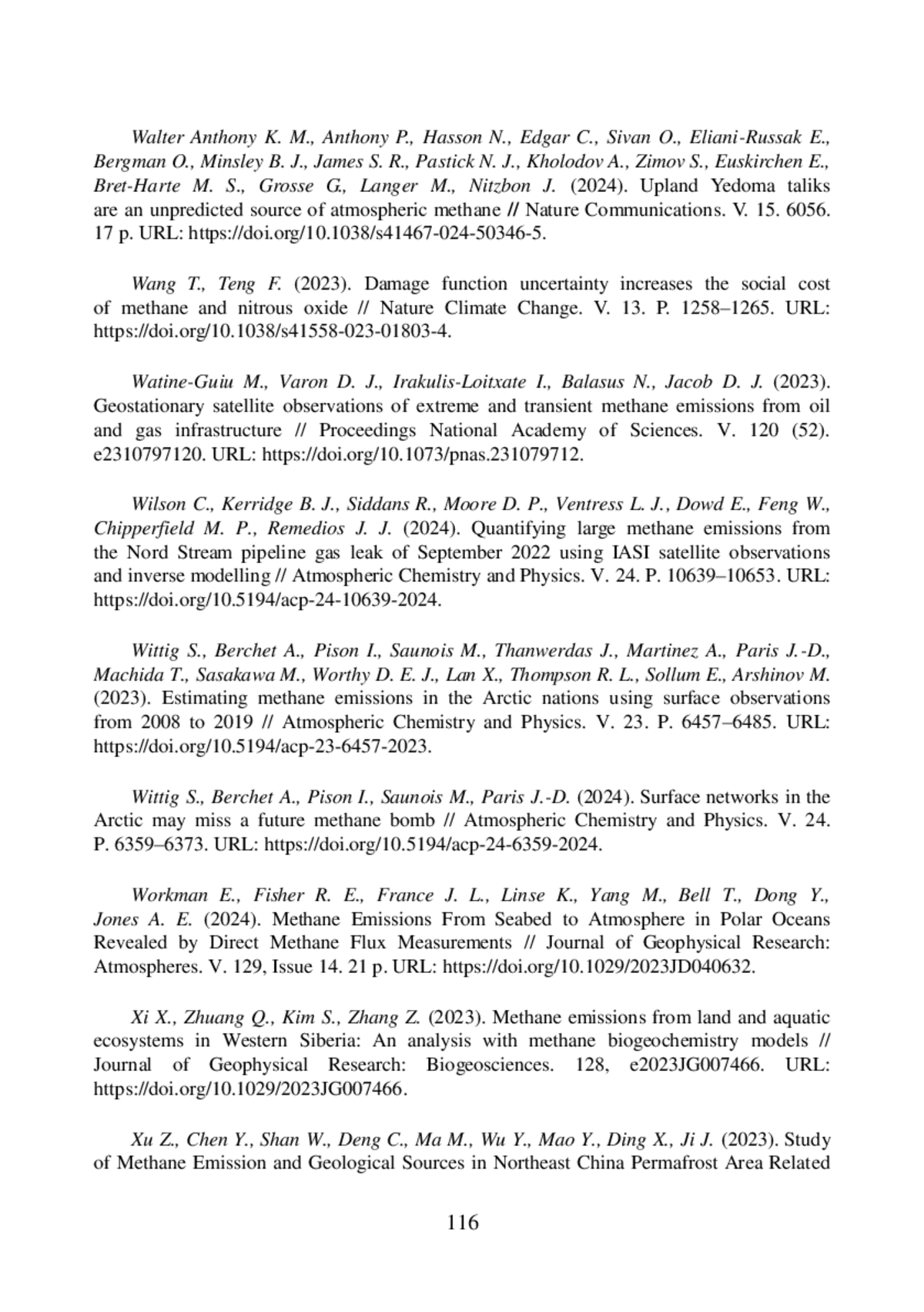 113. Nisbet E. G., Manning M. R., Dlugokencky E. J., Michel S. E., Lan X., Rockmann T., Denier van der Gon H. A. C., Schmitt J., Palmer P. I., Dyonisius M. N., Oh Y., Fisher R. E., Lowry D., France J. L., White J. W. C., Brailsford G., Bromley T. (2023). Atmospheric methane: Comparison between methane’s record in 2006-2022 and during glacial terminations // Global Biogeochemical Cycles. V. 37. e2023GB007875. 33 p. DOI: 10.1029/2023GB007875 EDN: SEFOTI