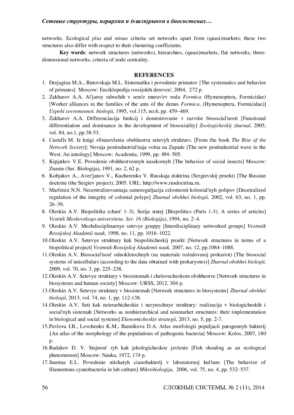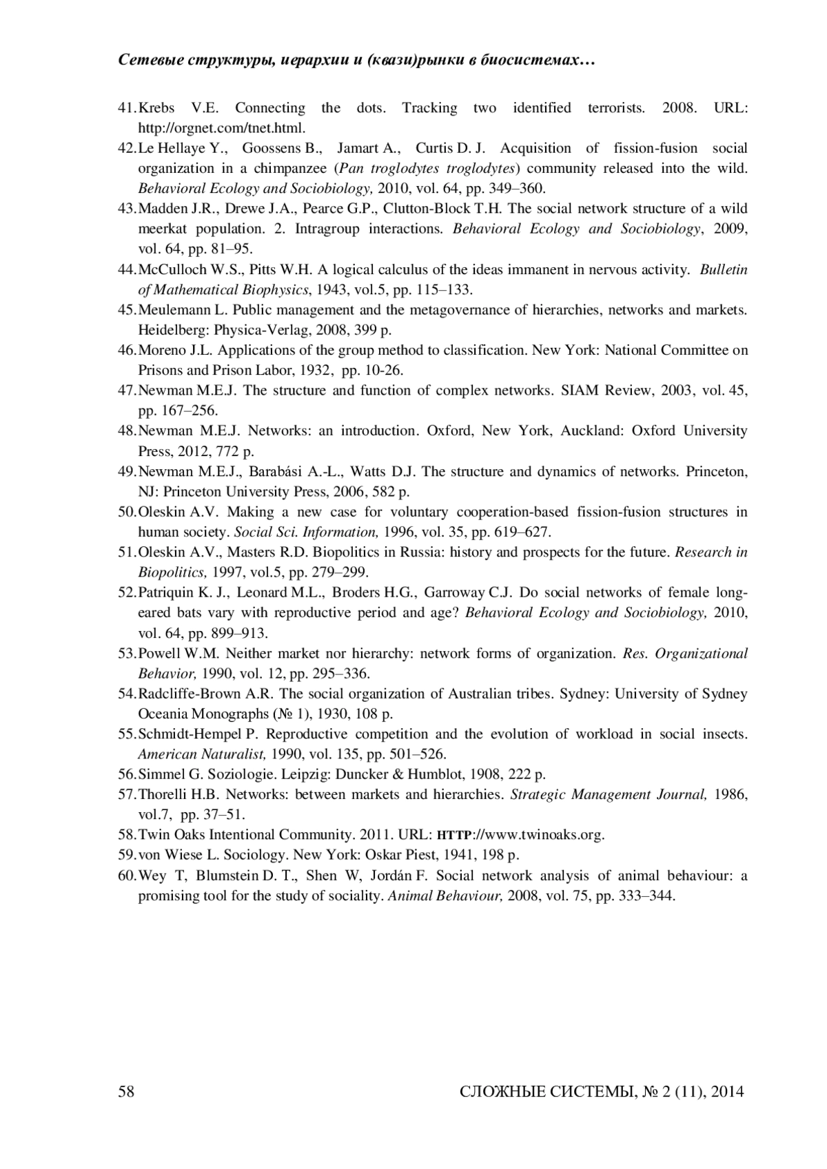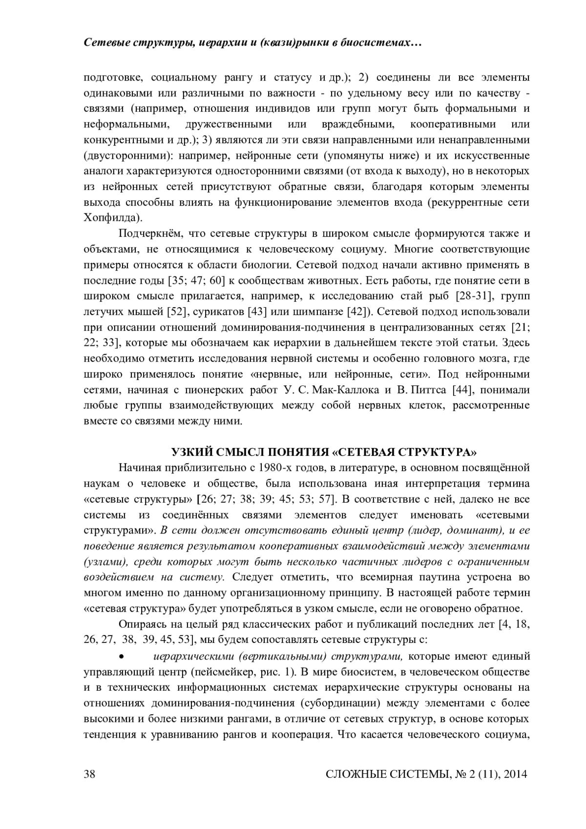 ОЛЕСКИН А. В. СЕТЕВЫЕ СТРУКТУРЫ, ИЕРАРХИИ И (КВАЗИ)РЫНКИ В БИОСИСТЕМАХ, ЧЕЛОВЕЧЕСКОМ ОБЩЕСТВЕ И ТЕХНИЧЕСКИХ ИНФОРМАЦИОННЫХ СИСТЕМАХ. КРИТЕРИИ КЛАССИФИКАЦИИ // СЛОЖНЫЕ СИСТЕМЫ. 2014. №2 (11)