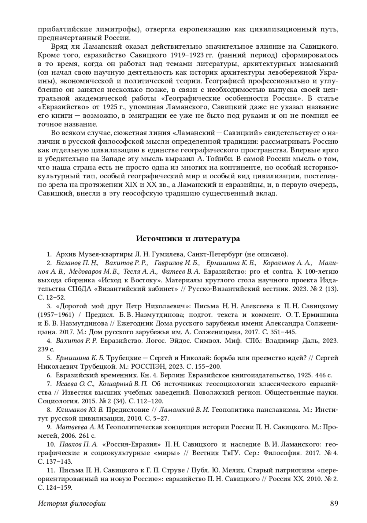 ЕРМИШИНА К. Б. К ПРОБЛЕМЕ РЕЦЕПЦИИ ИДЕЙ В. И. ЛАМАНСКОГО ИЛИ ИХ ВЛИЯНИЯ НА ЕВРАЗИЙСТВО В СВЕТЕ ИЗУЧЕНИЯ ТЕКСТОВ КАК ИСТОРИЧЕСКОГО ИСТОЧНИКА // РУССКО-ВИЗАНТИЙСКИЙ ВЕСТНИК. 2025. № 1 (20)