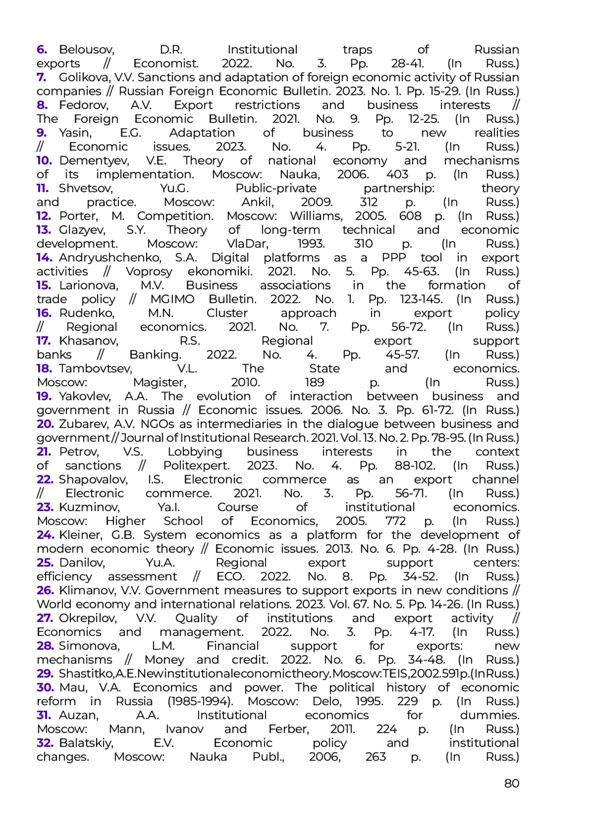 Ключевые фразы: ВНЕШНЕЭКОНОМИЧЕСКАЯ ПОЛИТИКА, взаимодействие государства и бизнеса, государственно-частное партнерство, цифровизация, экспорт, институциональное развитие, нко