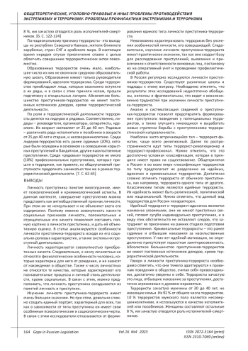 Статья: КРИМИНОЛОГИЧЕСКИЕ ОСОБЕННОСТИ ЛИЧНОСТИ ПРЕСТУПНИКА-ТЕРРОРИСТА (2023)