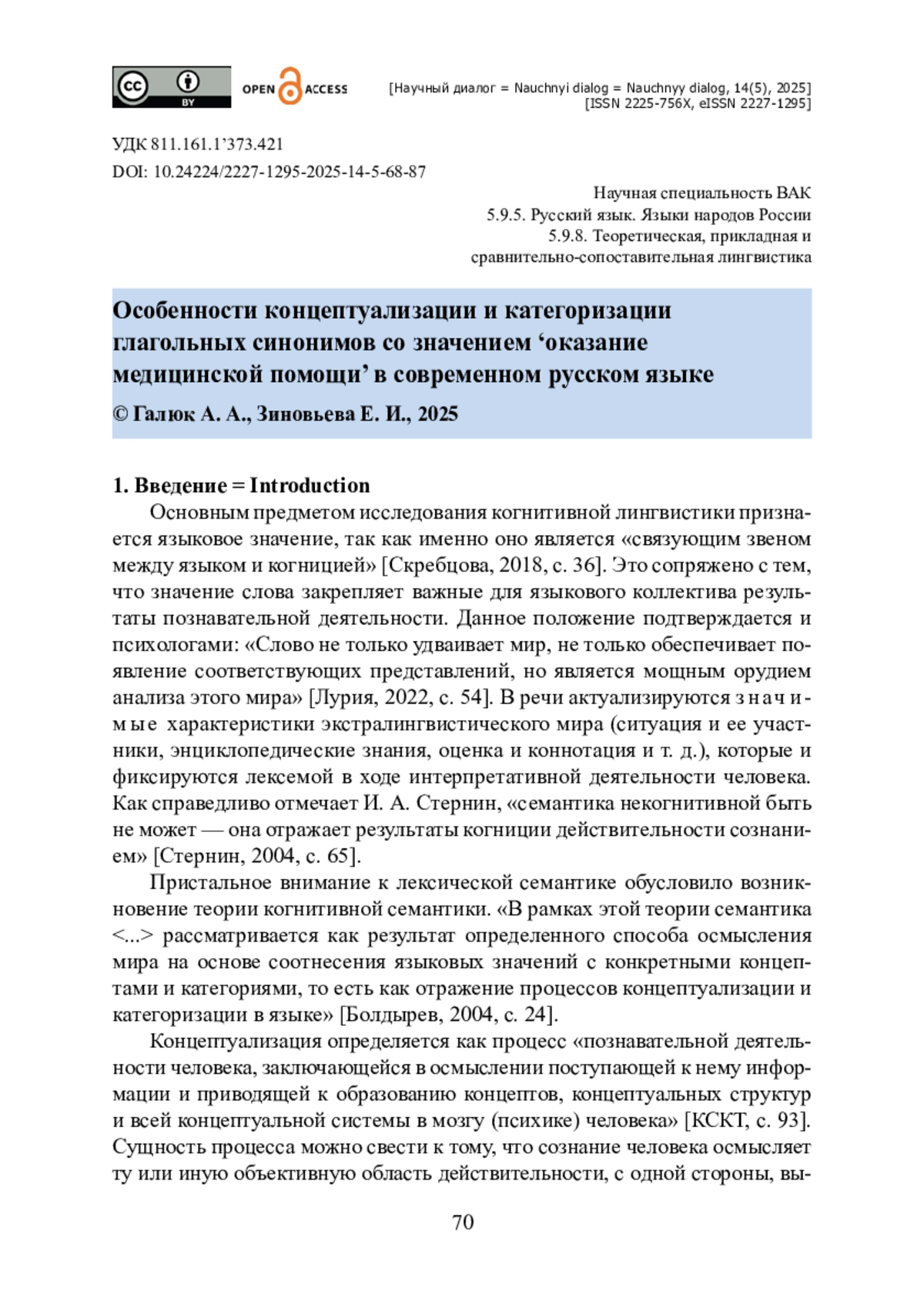 5. Галюк А. А. Исследование русских синонимичных глаголов с позиции когнитивно-дискурсивного подхода (на материале глаголов воспитания) / А. А. Галюк // Известия Волгоградского государственного педагогического университета. - 2022. - № 3 (166). - С. 153-161.