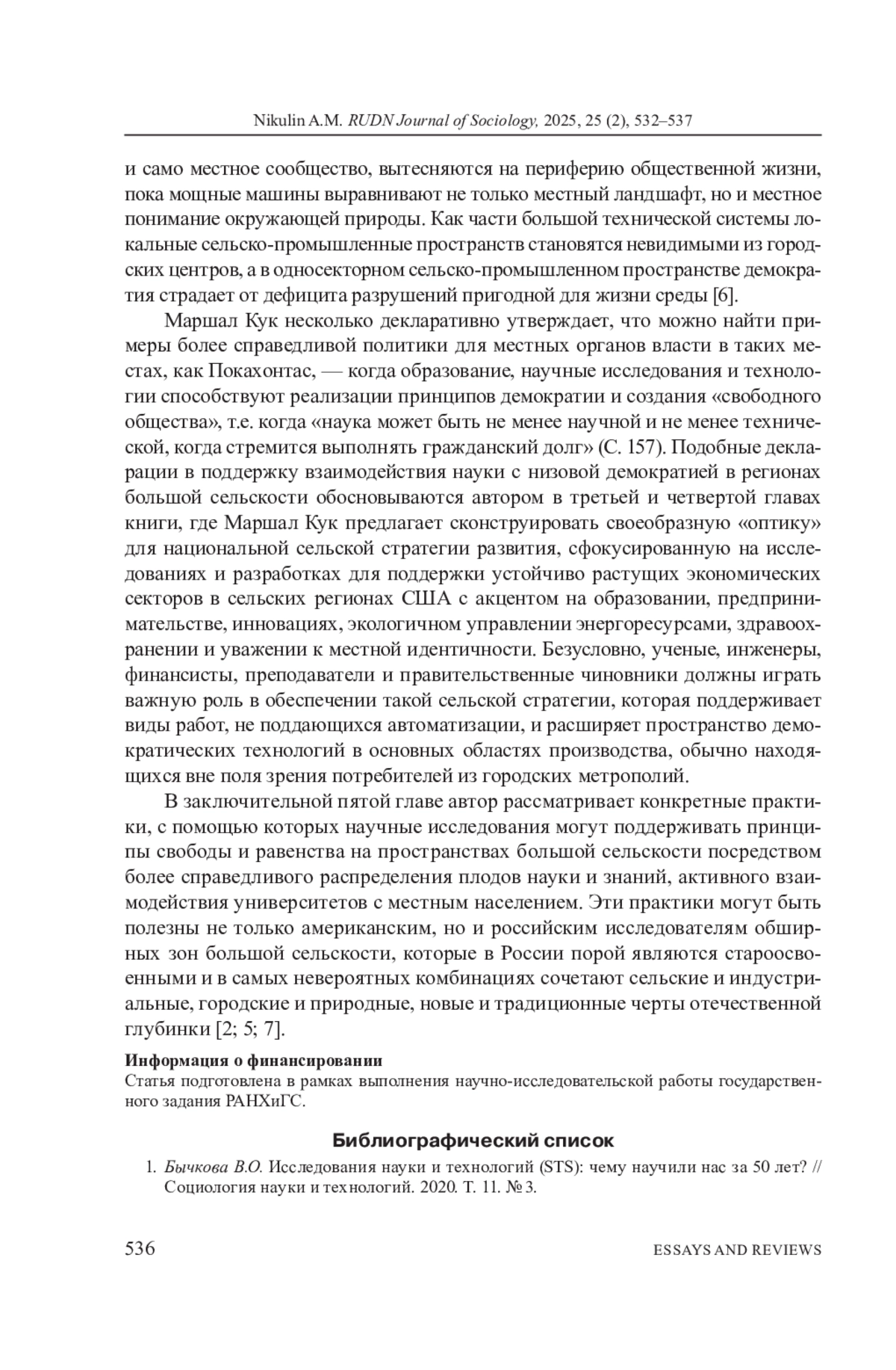 1. Бычкова В.О. Исследования науки и технологий (STS): чему научили нас за 50 лет? // Социология науки и технологий. 2020. Т. 11. № 3.