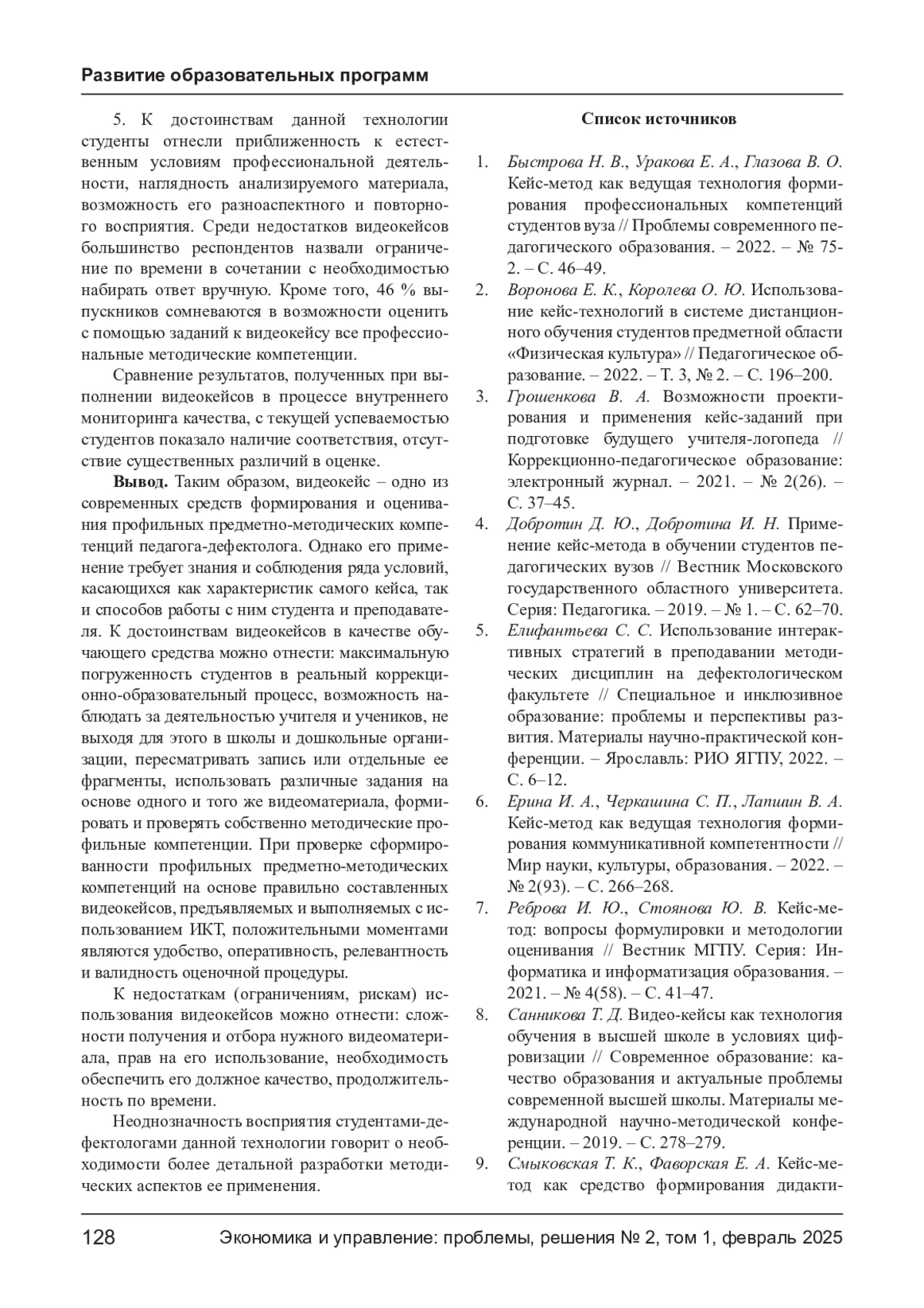 2. Воронова Е. К., Королева О. Ю. Использование кейс-технологий в системе дистанционного обучения студентов предметной области “Физическая культура” // Педагогическое образование. - 2022. - Т. 3, № 2. - С. 196-200. EDN: VMIWWU