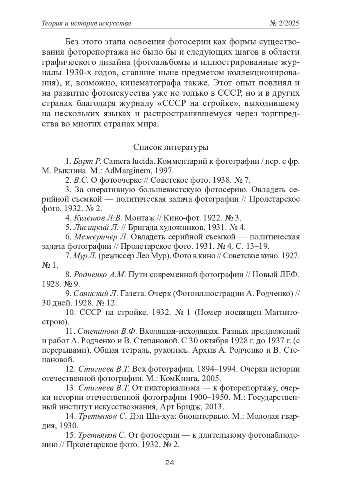 15. Третьяков С. От фотосерии - к длительному фотонаблюдению // Пролетарское фото. 1932. № 2.