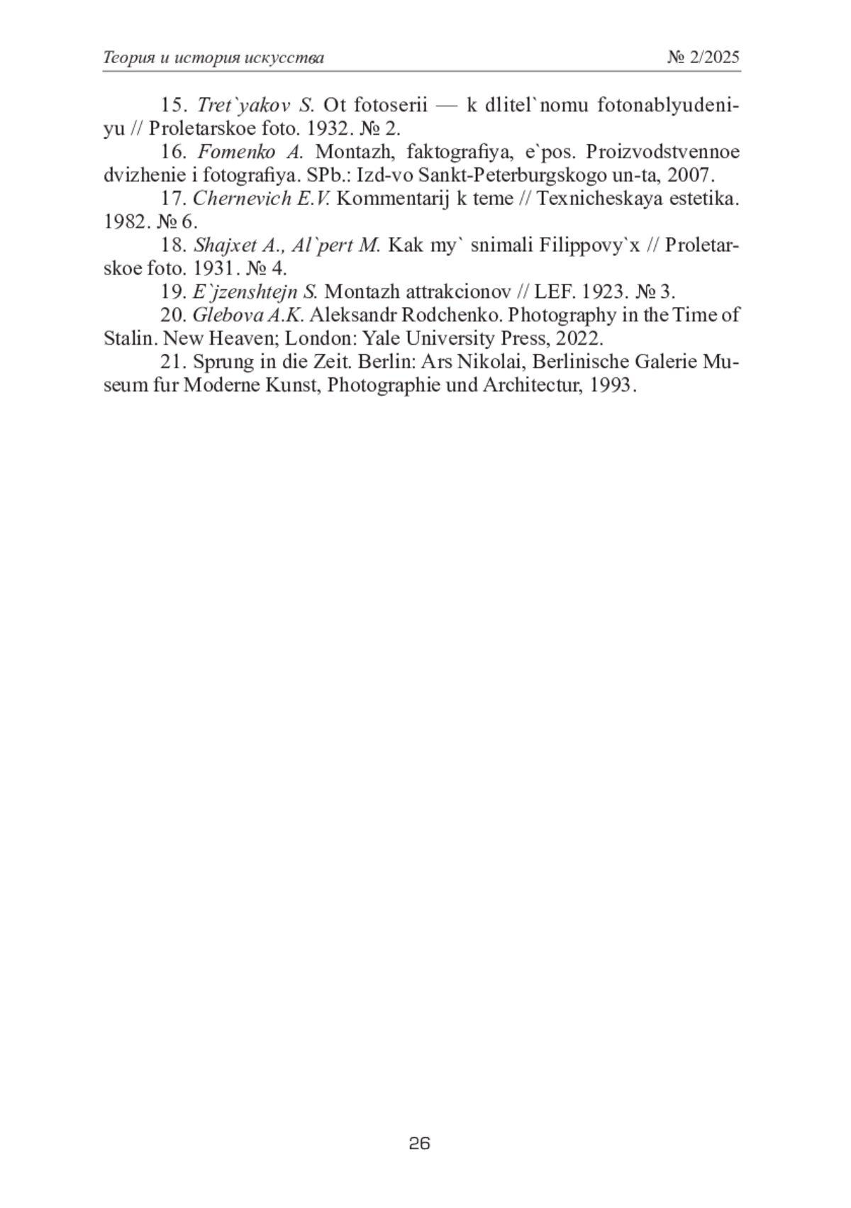 20. Glebova A.K. Aleksandr Rodchenko. Photography in the Time of Stalin. New Heaven; London: Yale University Рress, 2022.