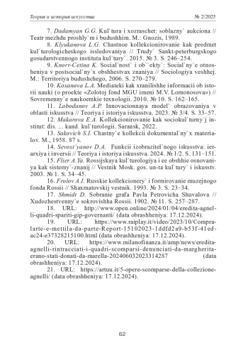 16. Фролов А.И. Русские коллекционеры и формирование музейного фонда России // Шахматовский вестник. 1993. № 3. С. 23-34.