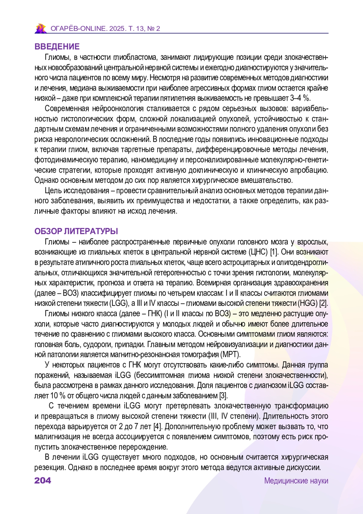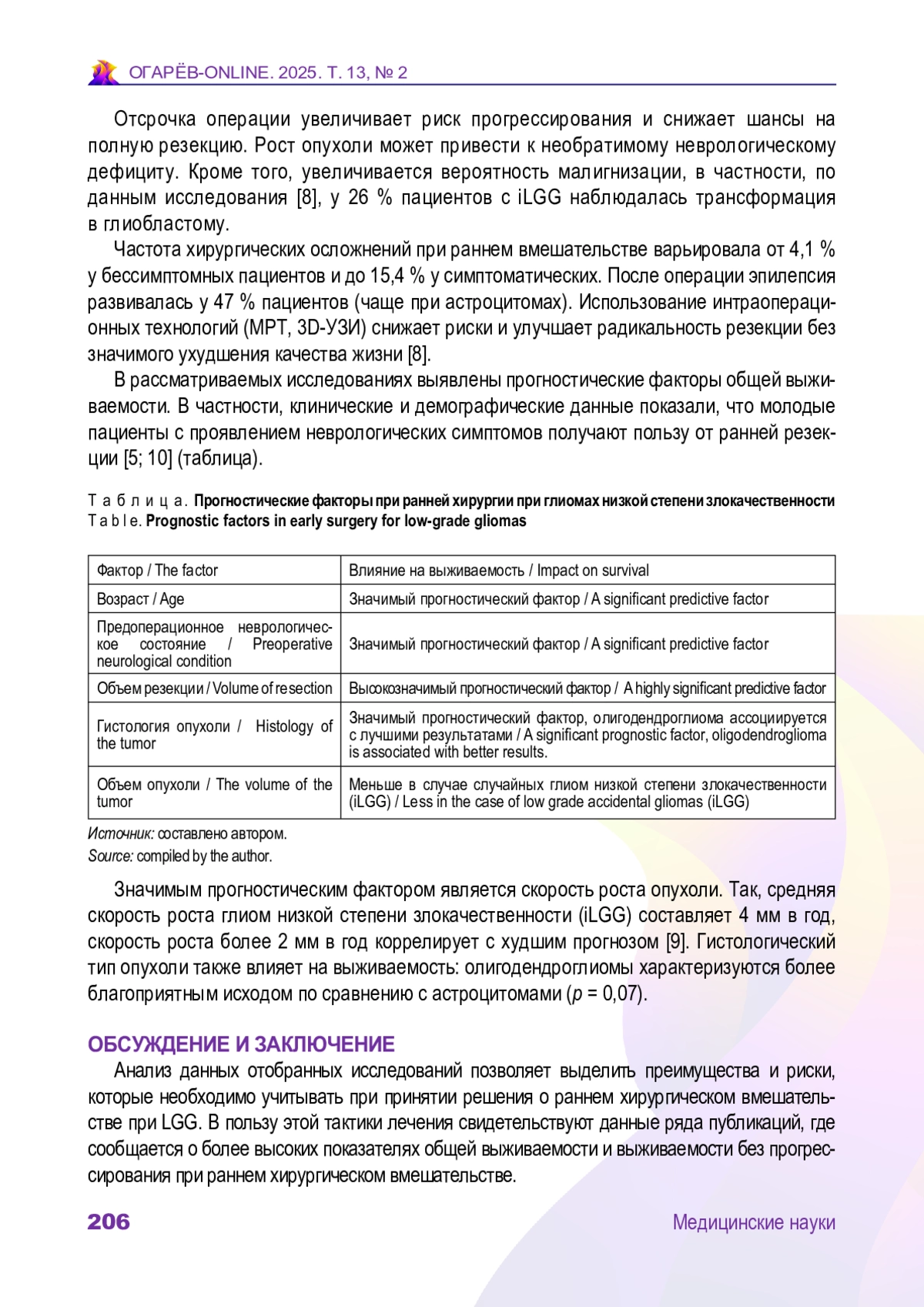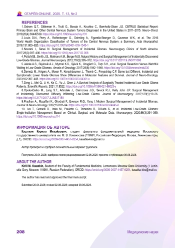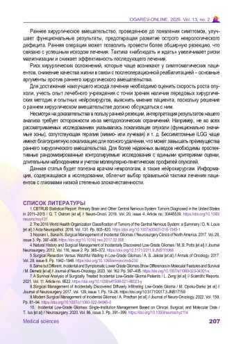 Статья: ПРЕИМУЩЕСТВА РАННЕЙ ХИРУРГИИ ПРИ ГЛИОМАХ НИЗКОЙ СТЕПЕНИ ЗЛОКАЧЕСТВЕННОСТИ (2025)