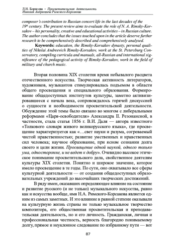 Ключевые фразы: ПРОСВЕЩЕНИЕ, династия римских-корсаковых, личностные качества николая андреевича римского-корсакова, работа в петербургской консерватории, составление учебных программ и пособий, общероссийское и международное значение педагогической деятельности римского-корсакова, работа в области военной и церковной музыки
