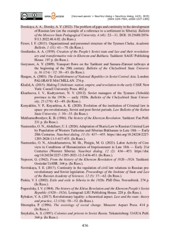 Намного шире представлена тематика ссылки и высылки в Советской России в 1920-е годы и ее связь с дореволюционным законодательством. В целом историческая преемственность в российском праве — одна из популярных тем в современной юридической науке [Новицкая, 2017; Коняхин, 2020 и др.].