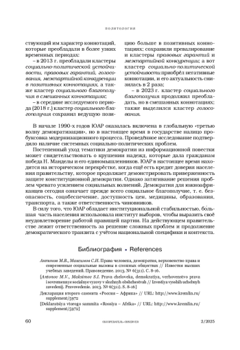 19. Lekala E. Democracy, Peace and Stability in South Africa: The Struggle Continues // Democracy and Political Governance in South Africa. The African Peer Review Mechanism. N.Y.: Springer, 2023. P. 83-97.