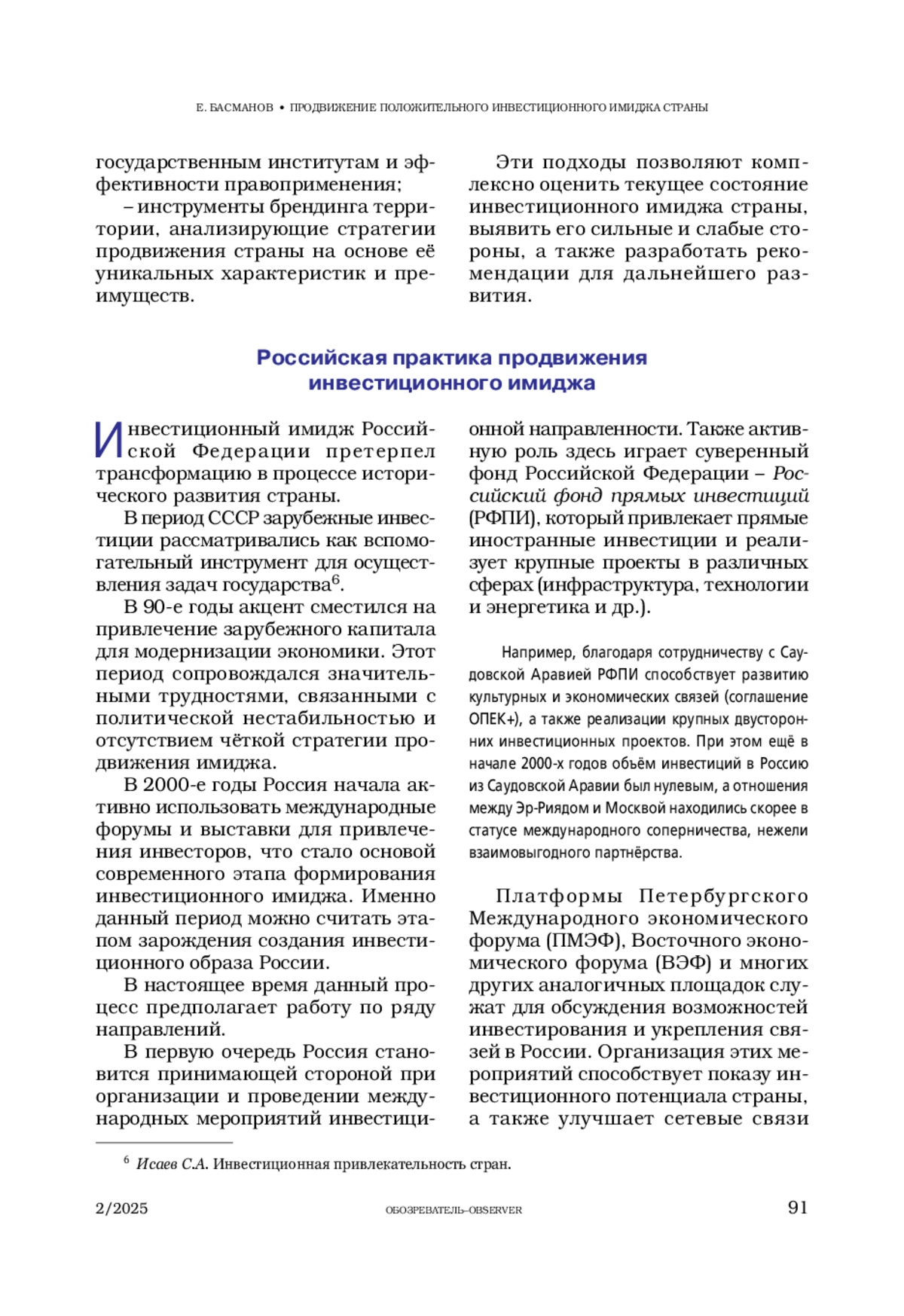 2. Исаев С.А. Инвестиционная привлекательность стран: социологические аспекты // Журнал социологических исследований. 2021. № 3. С. 45-47.