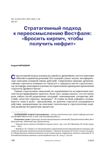 Статья посвящена этапу становления системы международных отношений, оказавшему влияние на последующее развитие правил взаимодействия между государствами. Критически анализируется возникновение и последующее функционирование Вестфальской системы международных отношений за счёт использования стратагемного подхода.