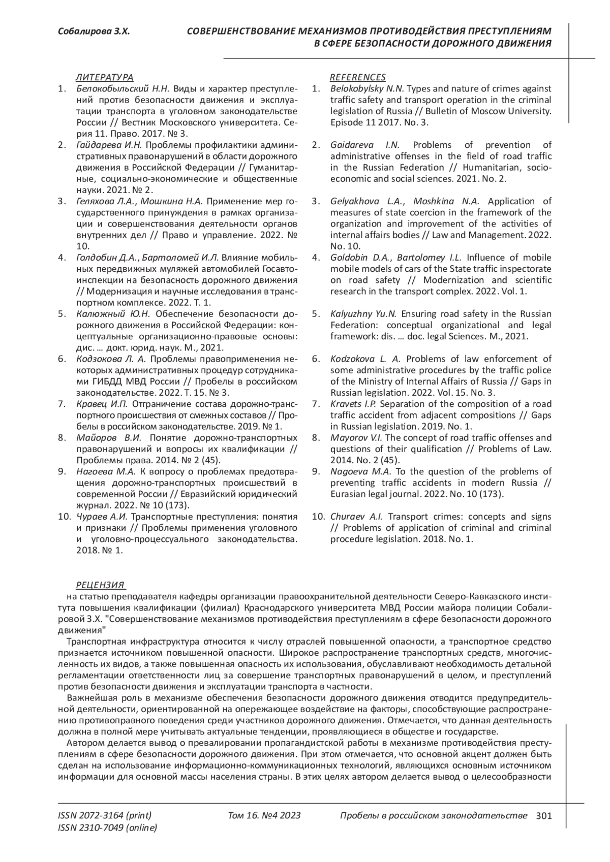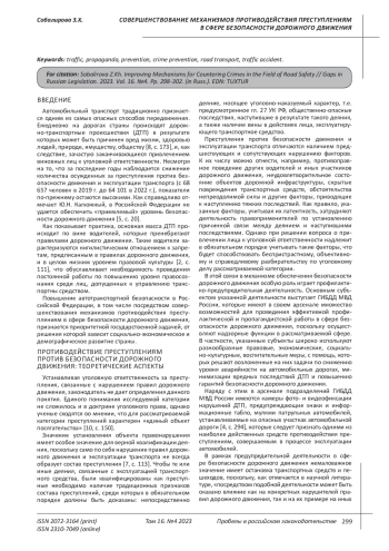 1. Белокобыльский Н.Н. Виды и характер преступлений против безопасности движения и эксплуатации транспорта в уголовном законодательстве России // Вестник Московского университета. Серия 11. Право. 2017. № 3. EDN: ZGCIJT