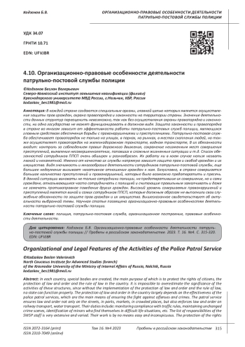 11. Майко А.Н. Административно-правовой статус патрульно-постовой службы // Вестник студенческого научного общества ГОУ ВПО “Донецкий национальный университет”. 2019. Т.4. № 11. С. 231-234. EDN: UHMRQY