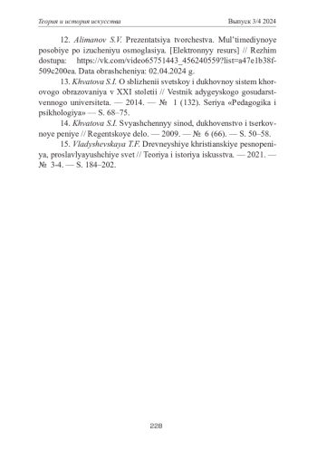 15. Владышевская Т.Ф. Древнейшие христианские песнопения, прославляющие свет //Теория и история искусства. - 2021. - № 3-4. - С. 184-202. EDN: MOJGSR