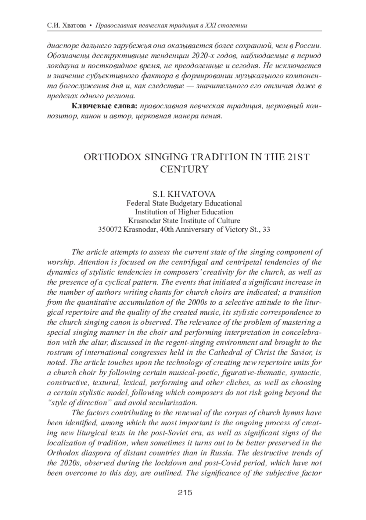 13. Хватова С.И. О сближении светской и духовной систем хорового образования в XXI столетии // Вестник адыгейского государственного университета. - 2014. - № 1 (132). Серия “Педагогика и психология” - С. 68-75. EDN: SFDMPB