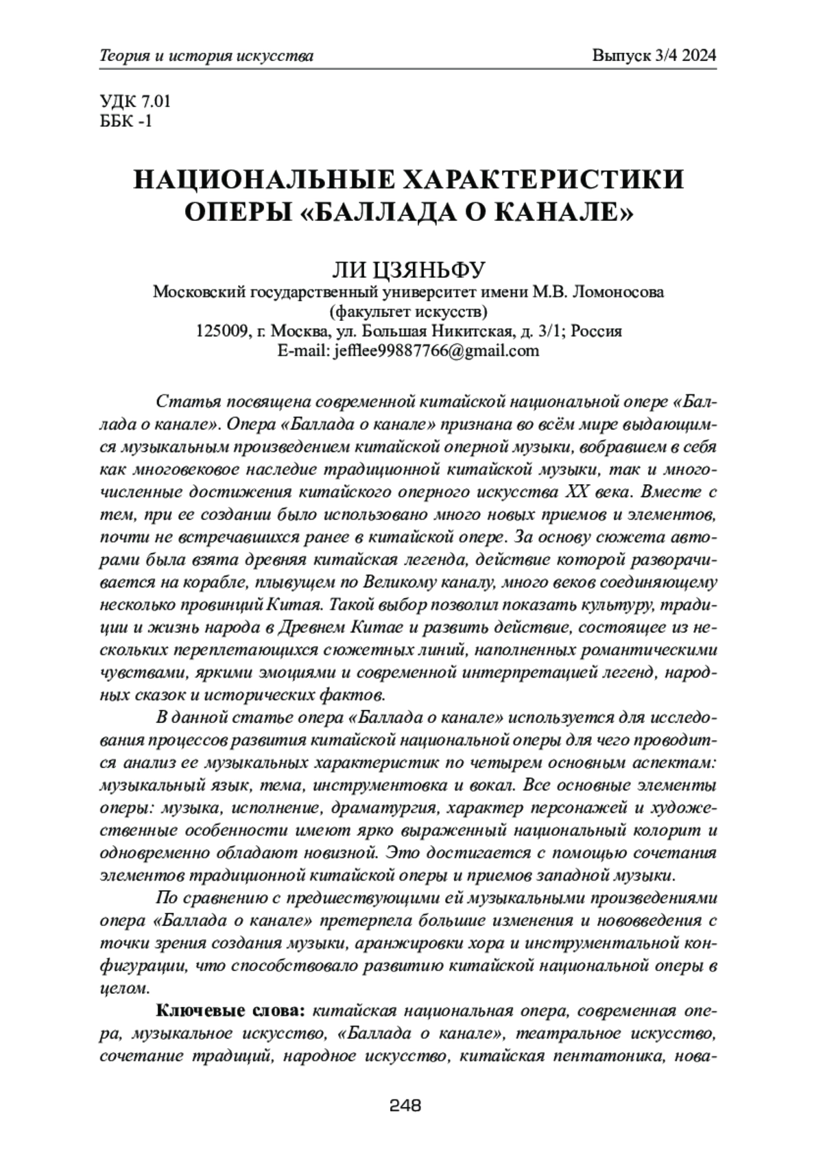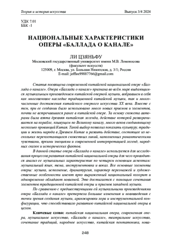 ЛИ Ц. НАЦИОНАЛЬНЫЕ ХАРАКТЕРИСТИКИ ОПЕРЫ "БАЛЛАДА О КАНАЛЕ" // ТЕОРИЯ И ИСТОРИЯ ИСКУССТВА. 2024. № 3-4