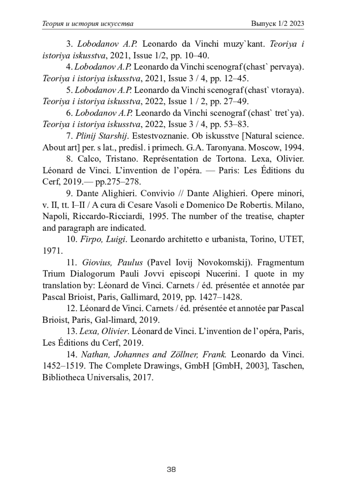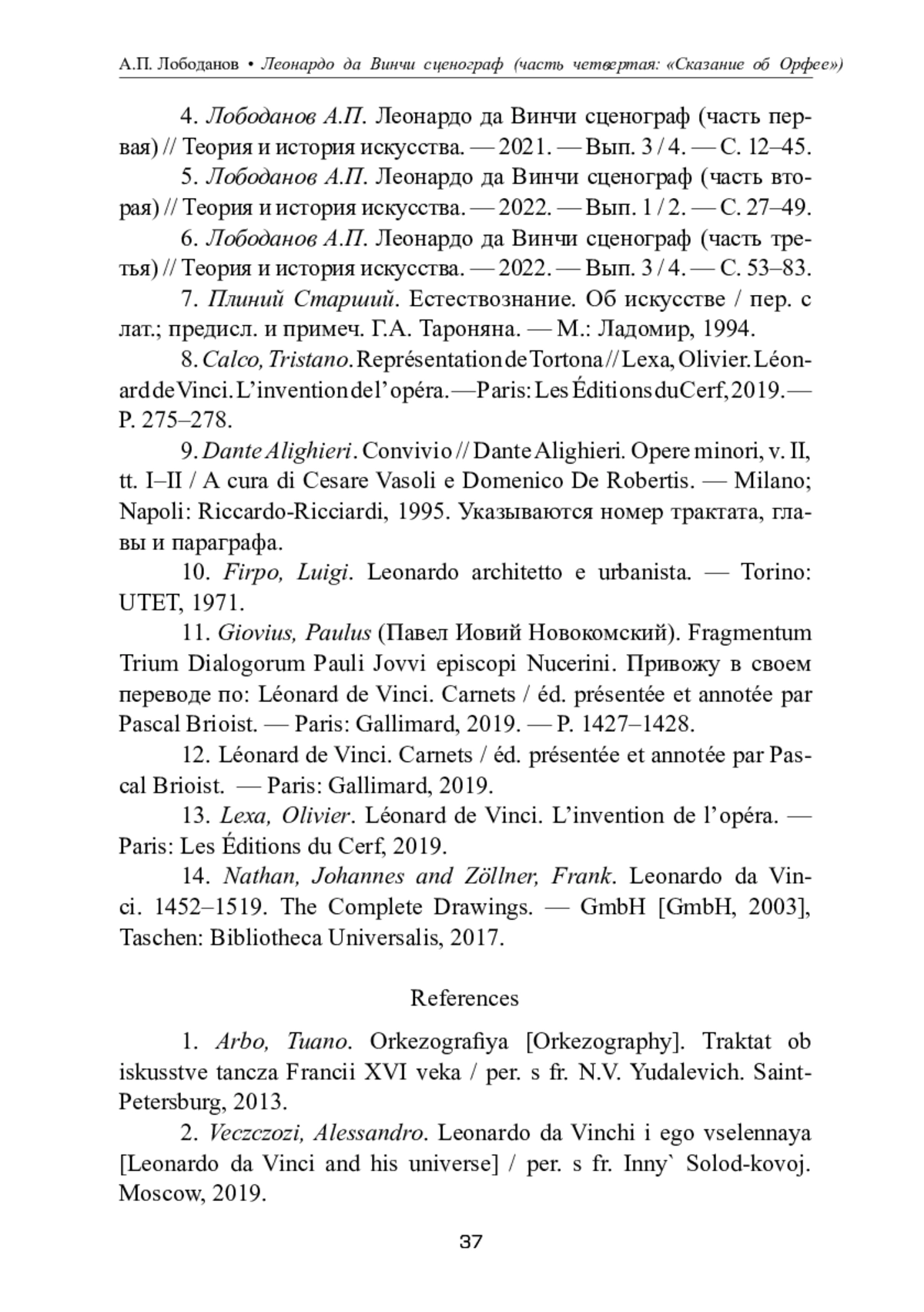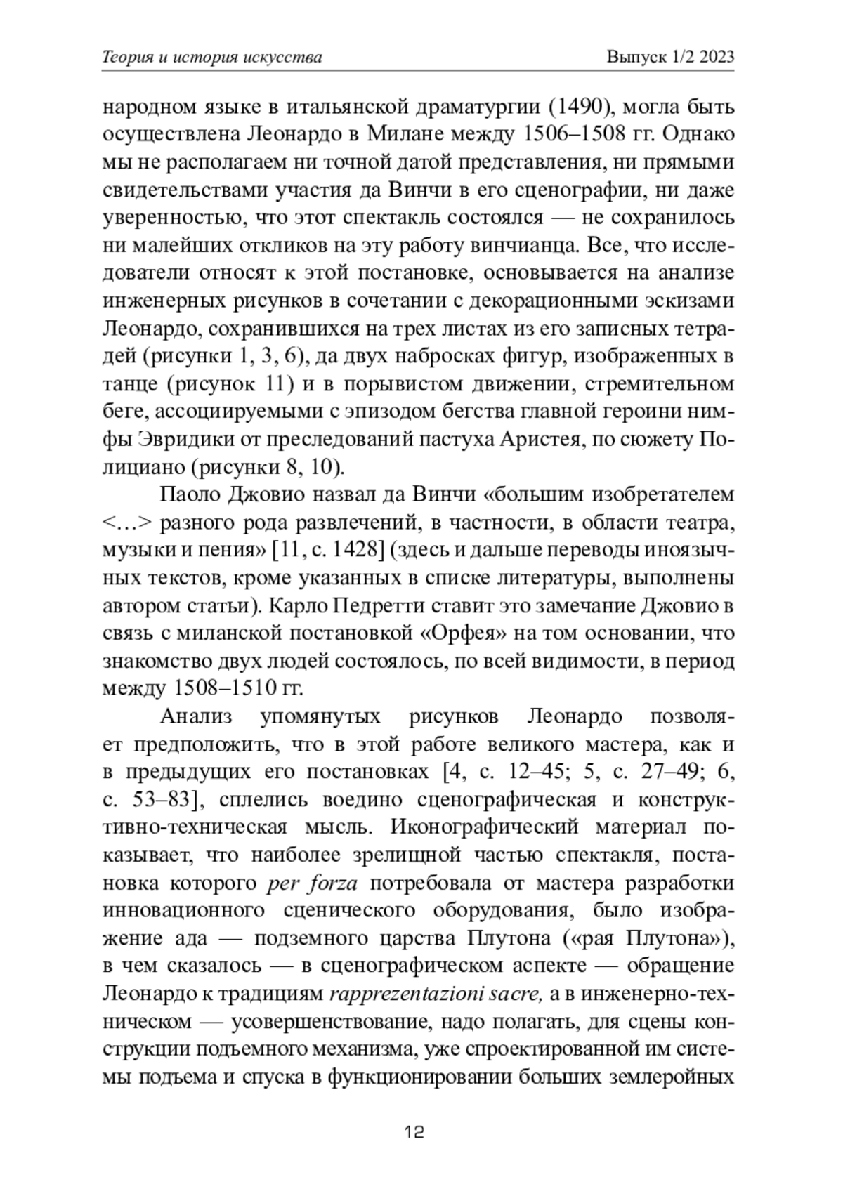 ЛОБОДАНОВ А. П. ЛЕОНАРДО ДА ВИНЧИ СЦЕНОГРАФ(ЧАСТЬ ЧЕТВЕРТАЯ: "СКАЗАНИЕ ОБ ОРФЕЕ") // ТЕОРИЯ И ИСТОРИЯ ИСКУССТВА. 2023. № 1-2