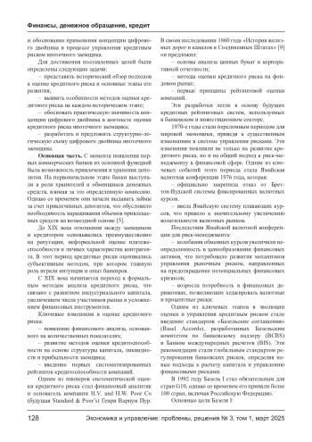 В течение последних десятилетий ключевым вопросом риск-менеджмента является управление кредитным риском как одного из ключевого вида финансовых рисков.