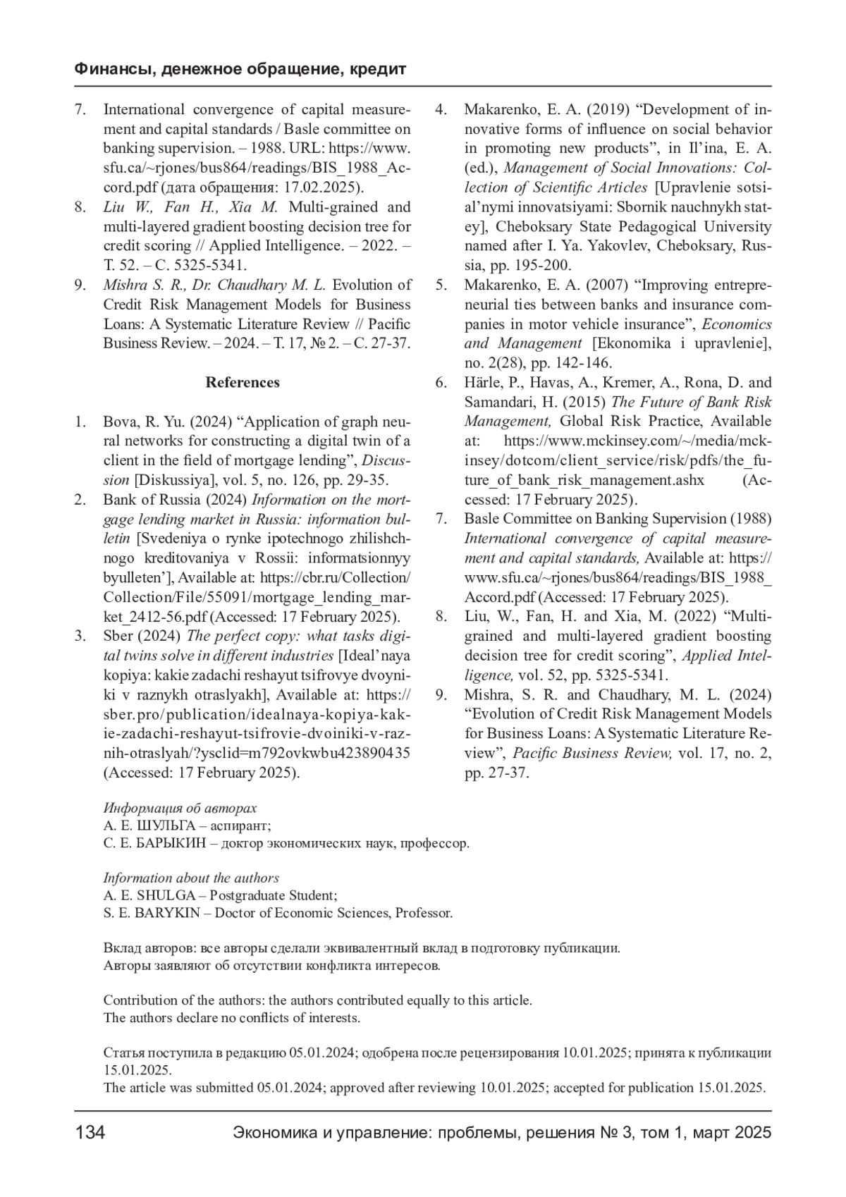 1. Бова Р. Ю. Применение графовых нейронных сетей для построения цифрового двойника клиента в сфере ипотечного жилищного кредитования // Дискуссия. - 2024. - Т. 5, № 126. - С. 29-35. EDN: HBIZIY