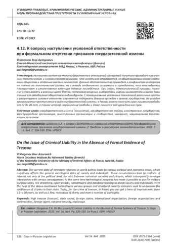 Статья: К ВОПРОСУ НАСТУПЛЕНИЯ УГОЛОВНОЙ ОТВЕТСТВЕННОСТИ ПРИ ФОРМАЛЬНОМ ОТСУТСТВИИ ПРИЗНАКОВ ГОСУДАРСТВЕННОЙ ИЗМЕНЫ (2023)